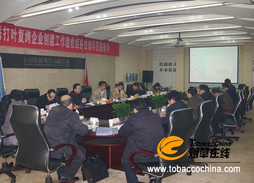 煙草在線天昌消息 日前,國家煙草專賣局、河南省煙草專賣局(公司)優(yōu)秀打葉復(fù)烤企業(yè)考評驗(yàn)收組對天昌國際煙草有限公司創(chuàng)建工作進(jìn)行了聯(lián)合考評驗(yàn)收?荚u驗(yàn)收組由中國煙葉公司鄭安處長帶隊,河南省局(公司)煙葉處、人勞處、政工處、審計處及河南省內(nèi)其他三家復(fù)烤企業(yè)人員參加了考評驗(yàn)收。