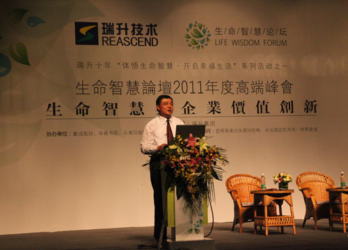 本次“生命智慧論壇”設(shè)有3個主題演講,分別是《生命智慧》、《生命智慧與企業(yè)價值創(chuàng)新》和《智慧、健康、幸福與云南》。在演講中,南開大學齊善鴻教授用道家思想詮釋了生命的真相與幸福的獲得;四川大學教授格桑澤仁則用優(yōu)美動聽的語言,與聽眾分享如何才能獲得“智慧、健康、幸!薄Q胍曋鞒秩送鯇、作家王晴、著名探險家金飛豹等同臺與聽眾分享了關(guān)于生命智慧與健康幸福的體悟。