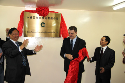 煙草在線據(jù)國(guó)家局行業(yè)網(wǎng)站報(bào)道 近日,中煙國(guó)際阿根廷有限公司在阿根廷薩爾塔省成立。正在阿根廷訪問(wèn)的國(guó)家煙草專賣局局長(zhǎng)、中國(guó)煙草總公司總經(jīng)理姜成康出席成立儀式,并與阿根廷薩塔爾省經(jīng)濟(jì)部長(zhǎng)魯代夫先生共同為中煙國(guó)際阿根廷有限公司揭牌。