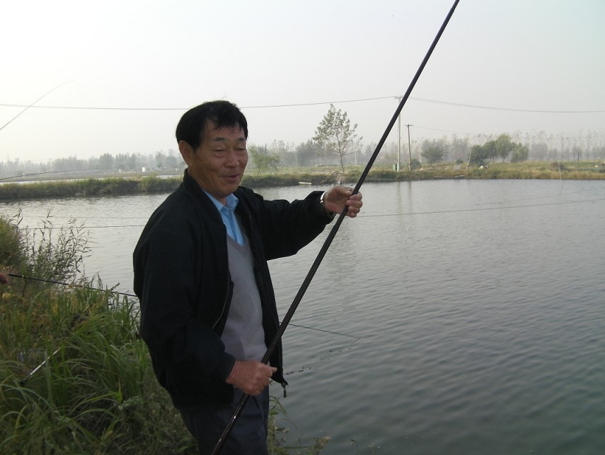 半小時(shí)后到達(dá)目的地。大家迫不急待拿出魚具,數(shù)十條魚竿分列池塘周圍,場(chǎng)面煞是壯觀。大家全神貫注,忙得不亦樂乎。投食,拌餌上食,串食,等浮漂,提竿,抄魚……上鉤魚兒 “噼啪”的拍水聲和大家的歡呼聲此起彼伏,映襯著一池碧水別有情趣。