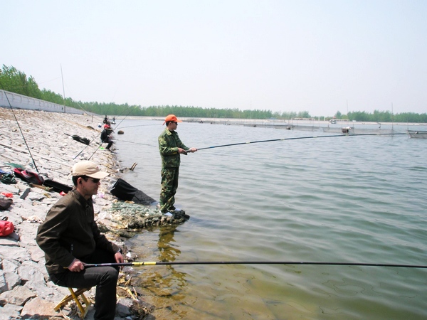 這次共有三十多位員工及家屬參加了活動(dòng)。一到水庫(kù),大家紛紛迫不及待的跳下車,自由選擇中意的釣位,開始撒窩垂釣?创蠹业难b備,除了魚竿、魚線、魚鉤、浮漂、魚餌這些必備物品外,太陽(yáng)傘、魚箱、馬扎、小鋤頭、食品和水,想的非常周到。
