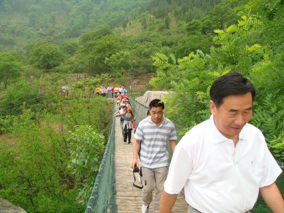 早上7點,公司近100名人員分乘兩輛空調(diào)旅游車,赴國家地質(zhì)公園、天下奇觀——熊耳山,游覽雙龍大裂谷、龍抓崖、含玉石、天街走廊、臥虎洞、古風(fēng)亭等景點。