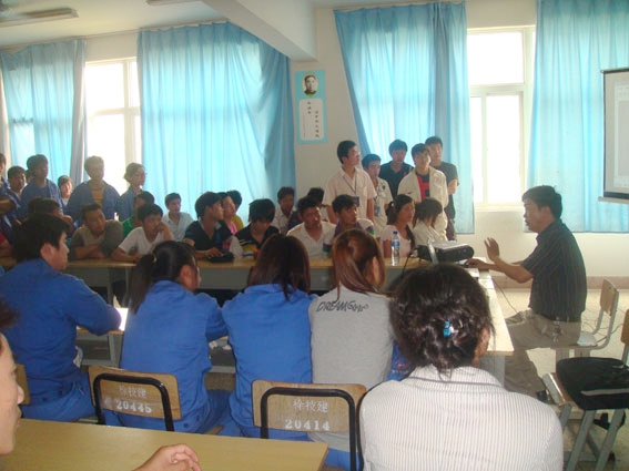 王總現(xiàn)場宣講,向?qū)W生介紹公司情況