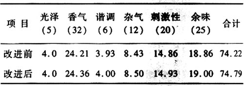 表4 改進(jìn)前后卷煙的感官質(zhì)量評(píng)吸結(jié)果對(duì)比①