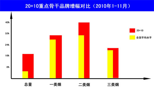 圖一:20+10重點(diǎn)骨干品牌增幅與全國平均水平對比